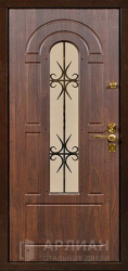Железная входная дверь в частный дом со стеклом отделка №21
