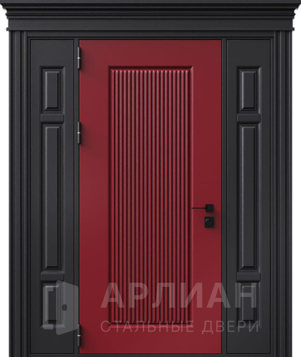 Металлическая входная дверь в коттедж с верхней фрамугой №10