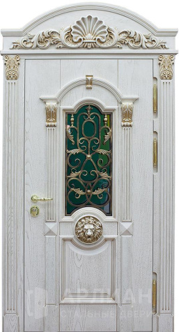 Арочная парадная дверь белого цвета с патиной №362