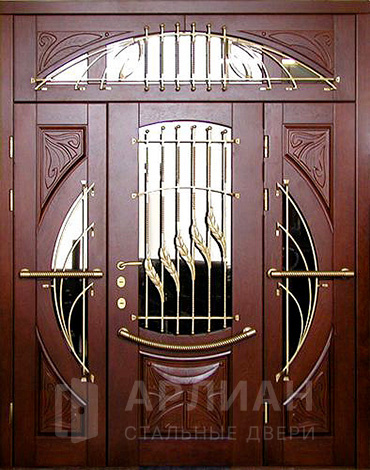 Парадная дверь с золотой патиной и фрамугой №408